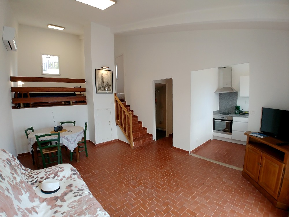 La maison de 60m² est composée d'un séjour, d'une mezzanine, d'une chambre, d'une cuisine, d'une salle d'eau avec WC séparés et d'une grande terrasse avec une vue imprenable sur le golfe de Sagone. La plage est accessible à 150m à pied.