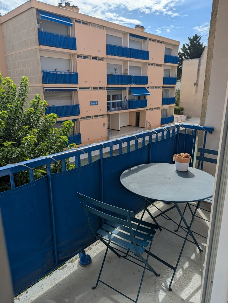 Petit balcon avec une belle baie double vitrage.