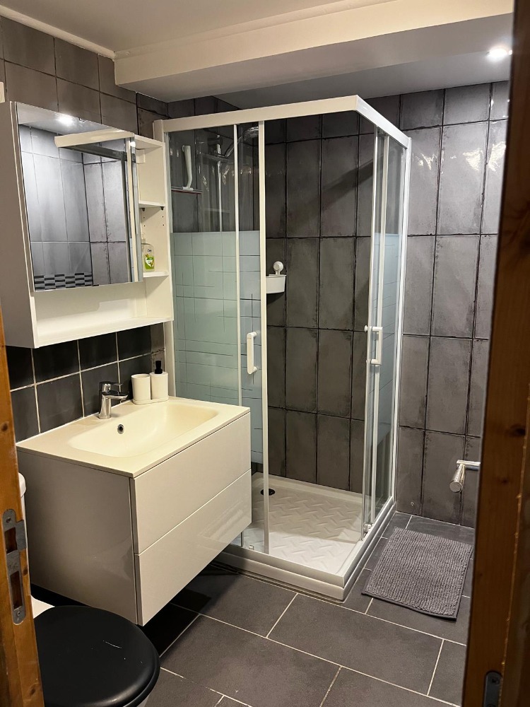 1er étage : SDB avec 2ème toilette. Chambre et placard.